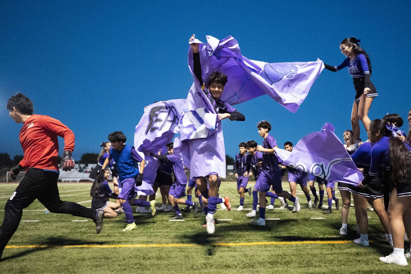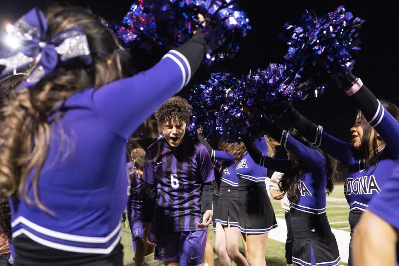 Scorpions run through a banner before the Fall Boys Soccer Semifinals game between Sedona Red Rock High School Scorpions and Blue Ridge Yellow Jackets at Sedona on Thursday, Oct. 30. Scorpions won 3-2.
