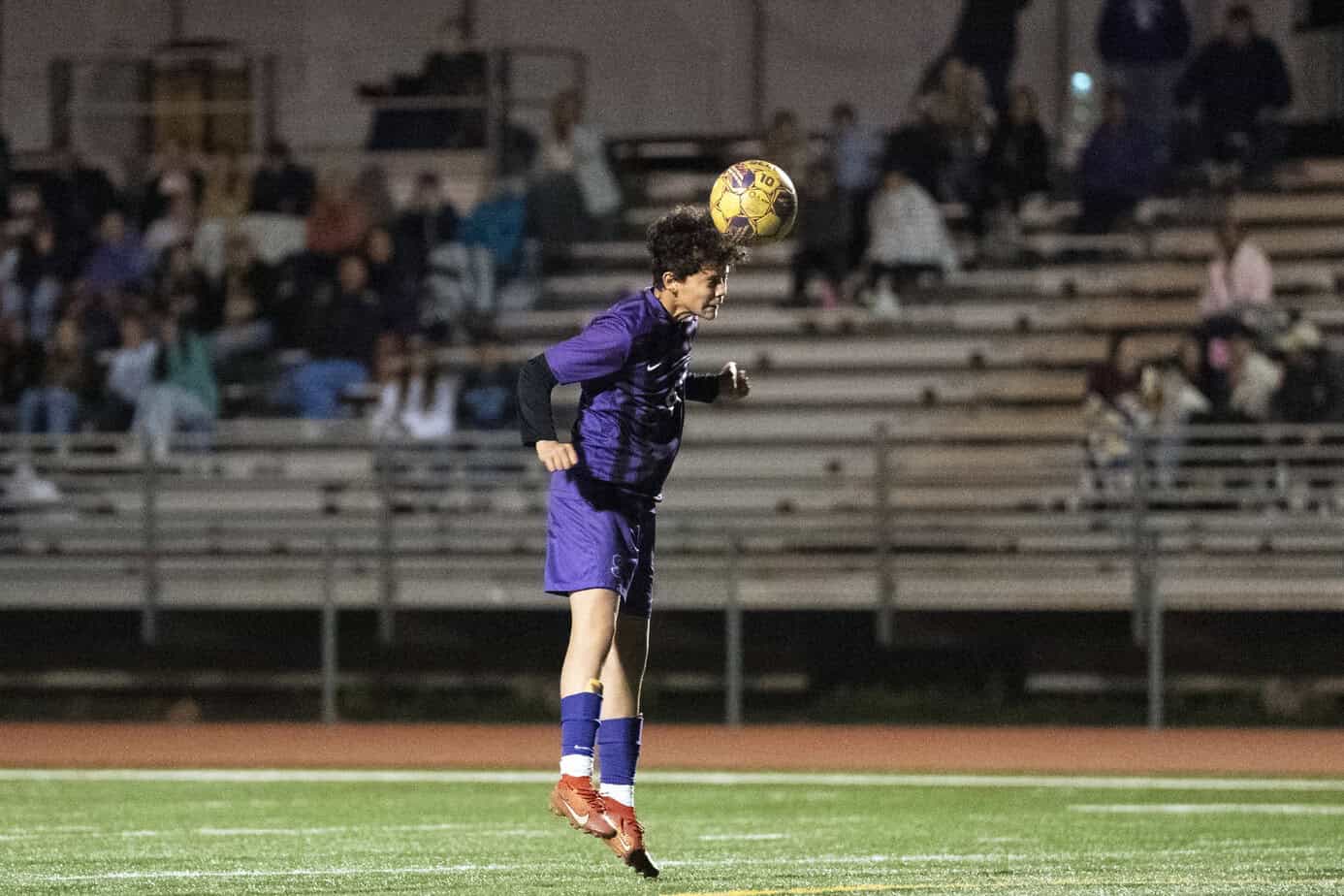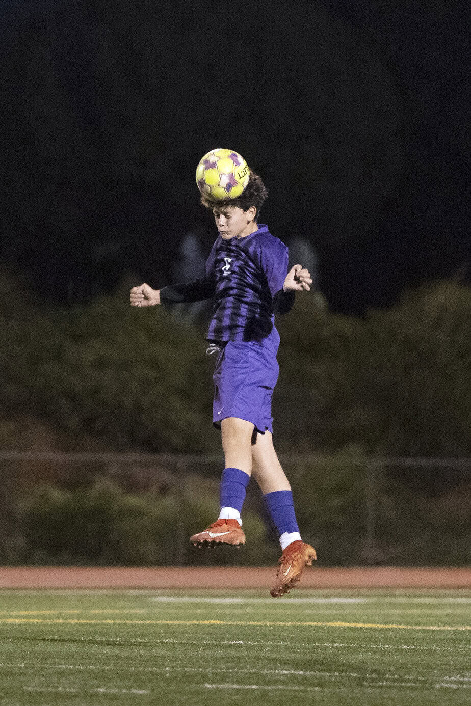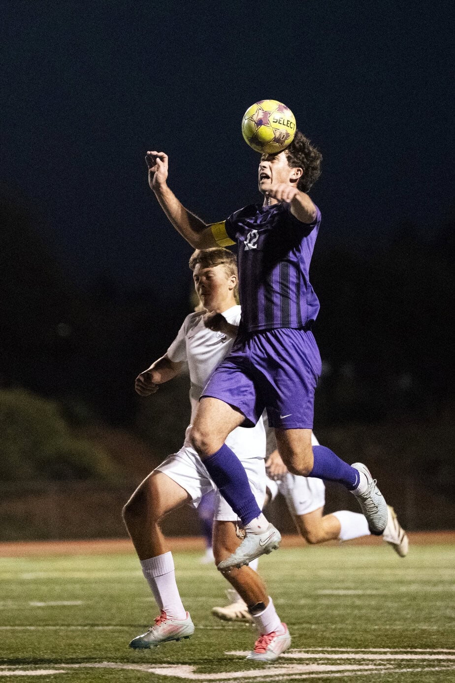 Scorpions senior Ben Metzger (no. 12) heads the ball during the Fall Boys Soccer Semifinals game between Sedona Red Rock High School Scorpions and Blue Ridge Yellow Jackets at Sedona on Thursday, Oct. 30.