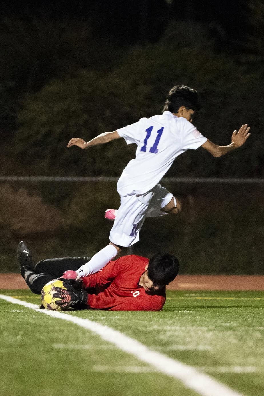 Scorpions freshman Hector Flores (no. 1) during the Fall Boys Soccer Semifinals game between Sedona Red Rock High School Scorpions and Blue Ridge Yellow Jackets at Sedona on Thursday, Oct. 30.