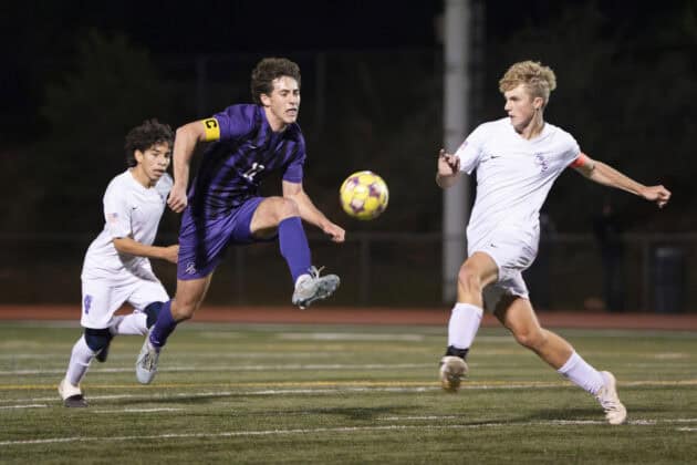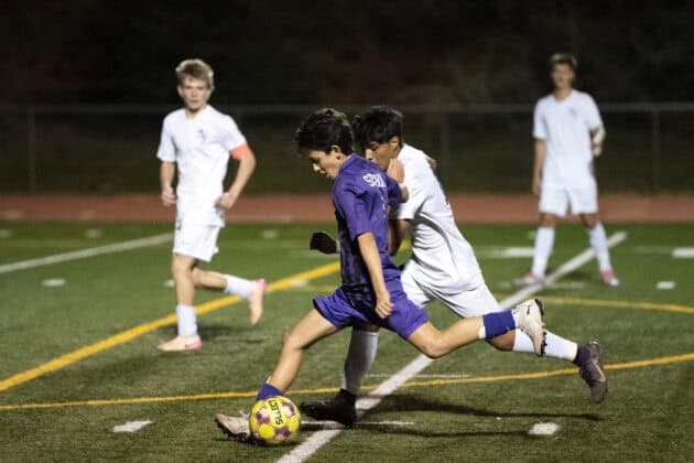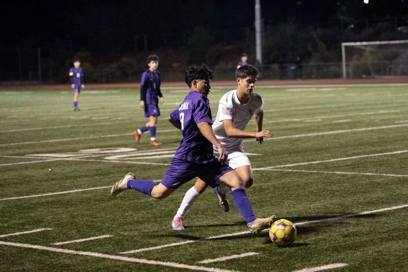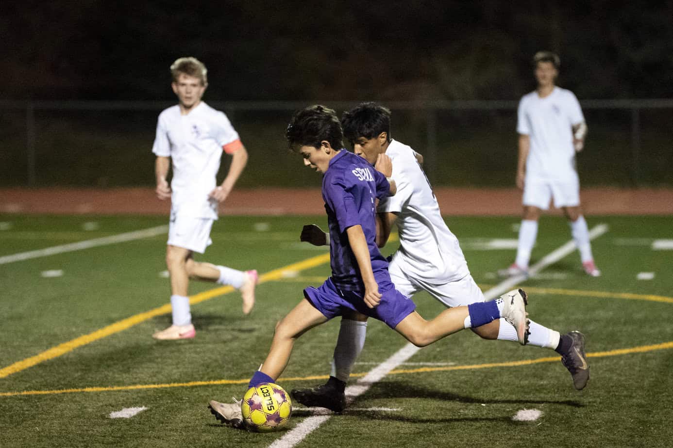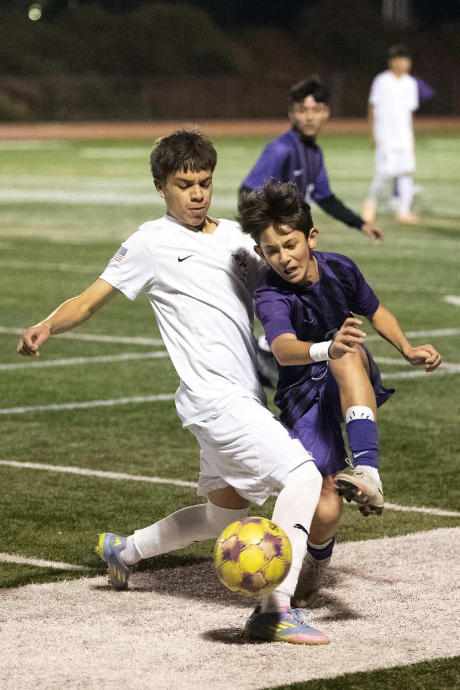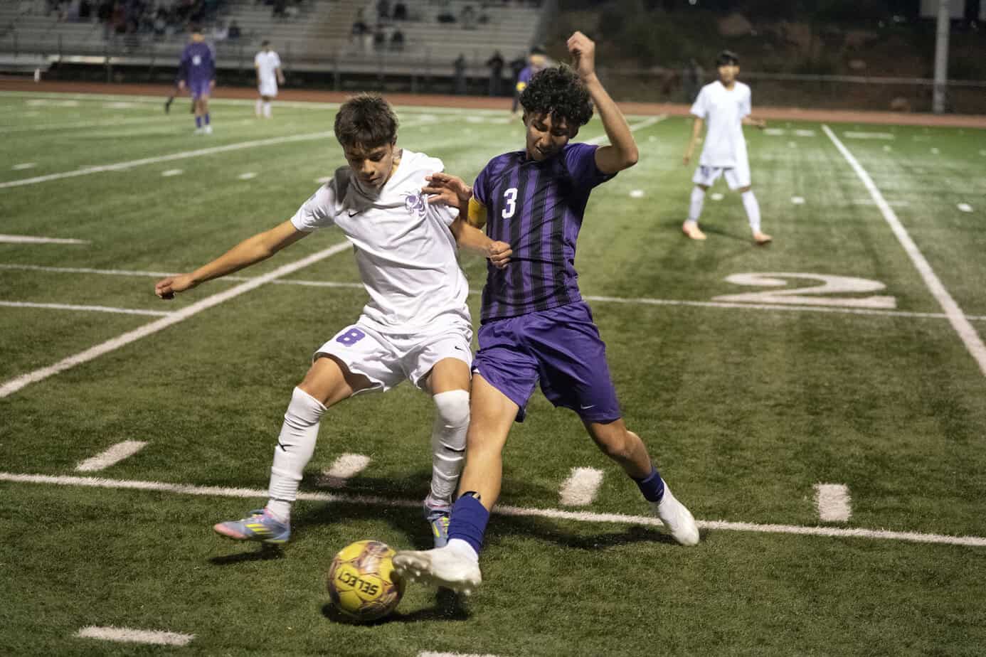 Scorpions freshman Luke Metzger (no. 2) fights for the ball during the Fall Boys Soccer Semifinals game between Sedona Red Rock High School Scorpions and Blue Ridge Yellow Jackets at Sedona on Thursday, Oct. 30.