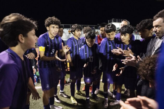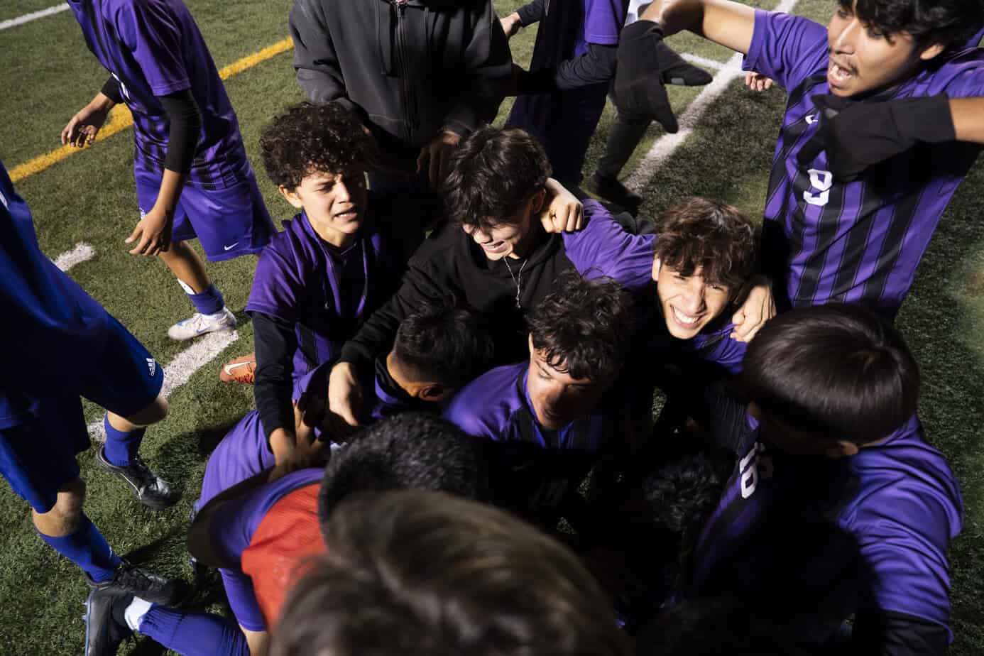 Scorpions huddle during halftime of the Fall Boys Soccer Semifinals game between Sedona Red Rock High School Scorpions and Blue Ridge Yellow Jackets at Sedona on Thursday, Oct. 30.