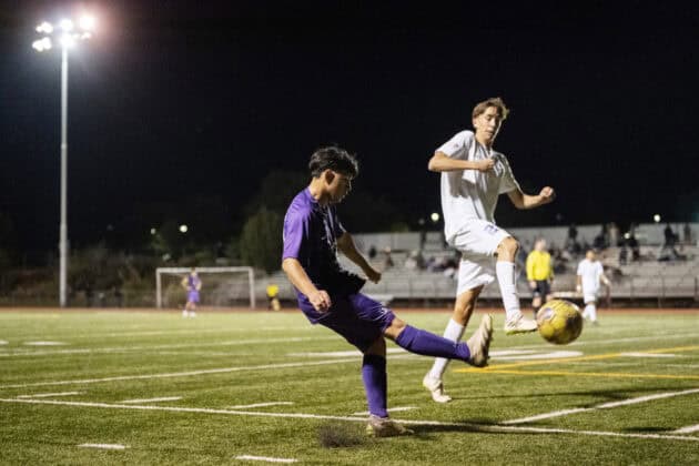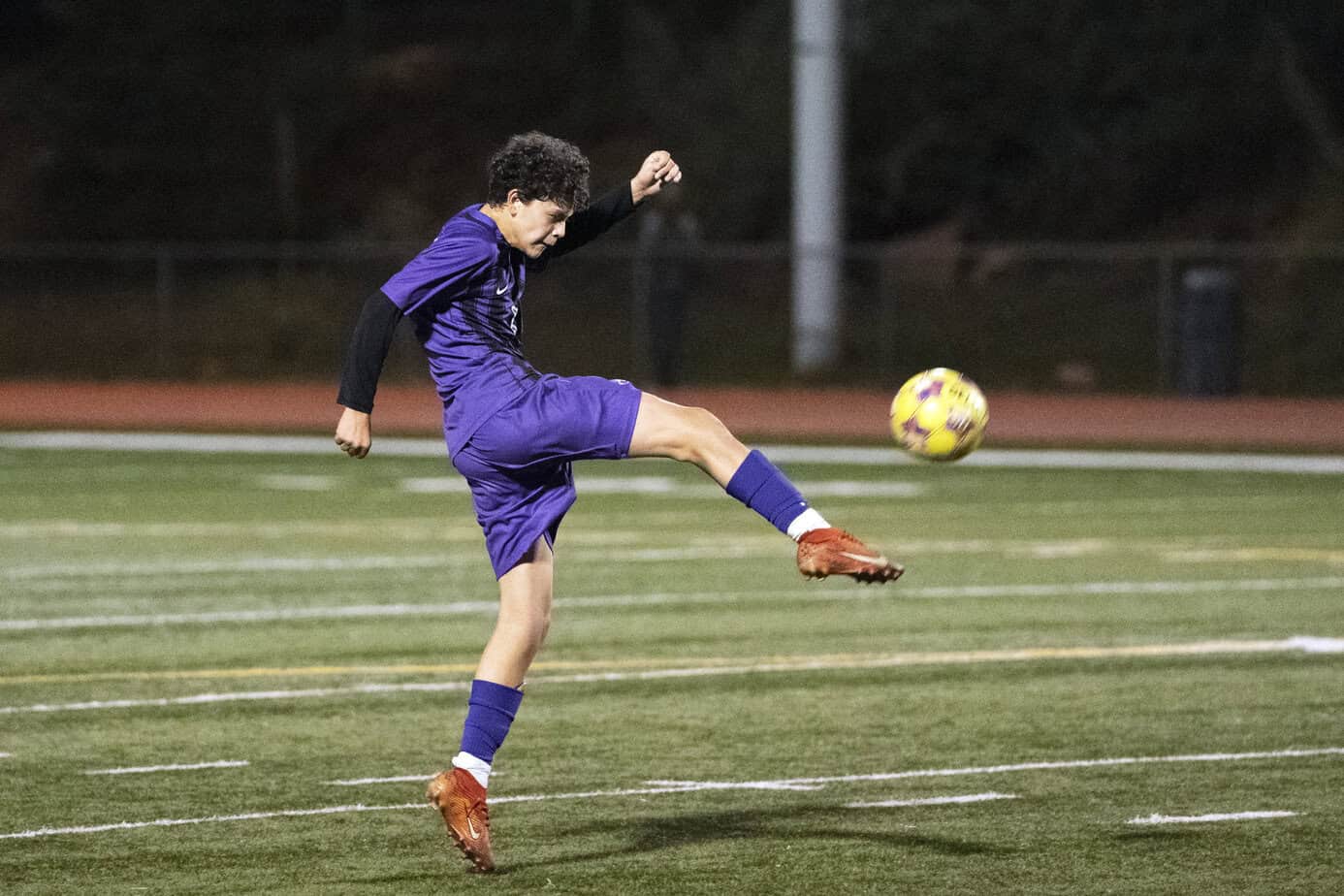 Scorpions freshman Luke Metzger (no. 2) kicks the ball during the Fall Boys Soccer Semifinals game between Sedona Red Rock High School Scorpions and Blue Ridge Yellow Jackets at Sedona on Thursday, Oct. 30.