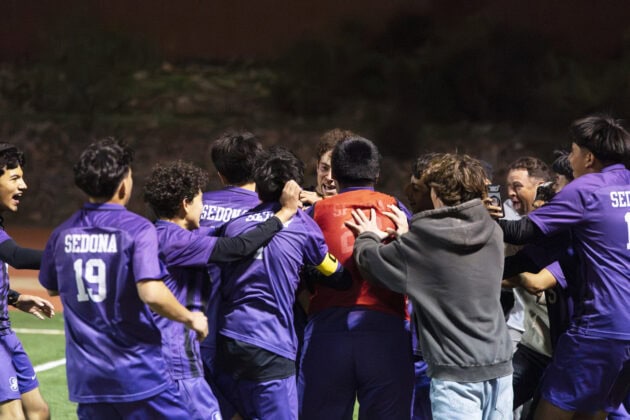 Scorpions celebrate their win during the Fall Boys Soccer Semifinals game between Sedona Red Rock High School Scorpions and Blue Ridge Yellow Jackets at Sedona on Thursday, Oct. 30.